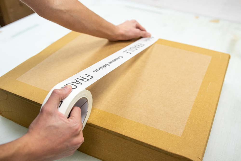 All of our art is packaged at our headquarters by our specialist-trained team using eco-conscious materials. Our materials are 80% eco-friendly, with a vision to reach 100% by the end of 2023.